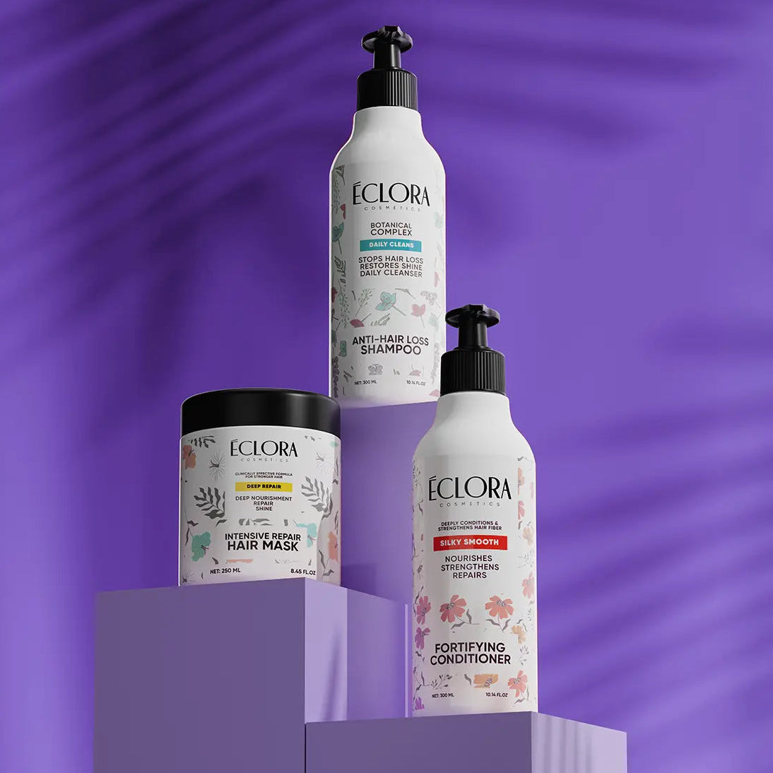 امنحي شعركِ روتينًا متكاملًا يجمع بين العناية العميقة والترطيب المكثّف مع مجموعة Éclora للعناية الفائقة بالشعر.
