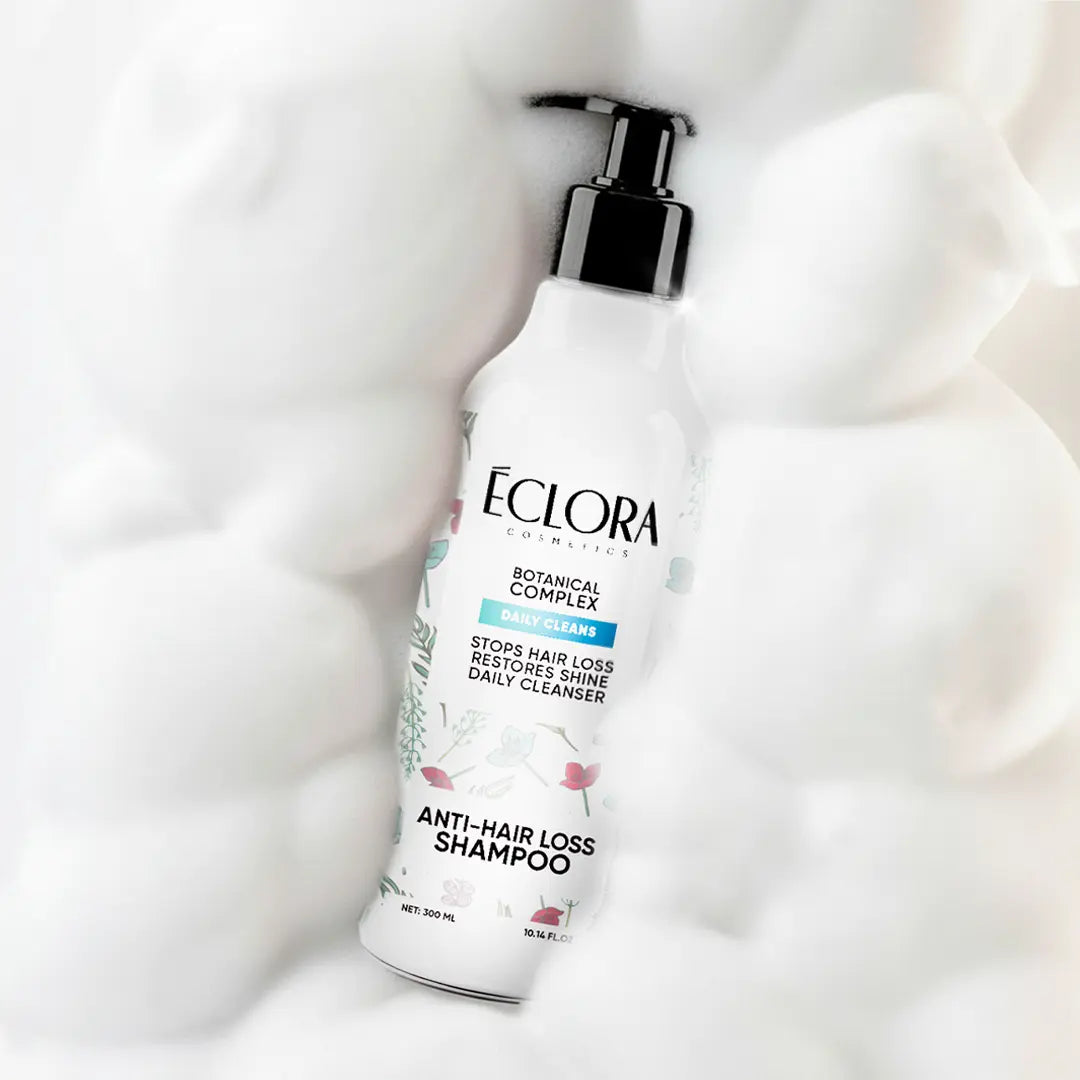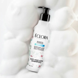 ابدأي رحلتك لشعر أقوى وأكثر صحة مع Éclora Anti-Hair Loss Shampoo – شامبو مبتكر بتركيبة فريدة من خلاصة الزيوت الطبيعية، الكيراتين، البانثينول، وفيتامين E.
